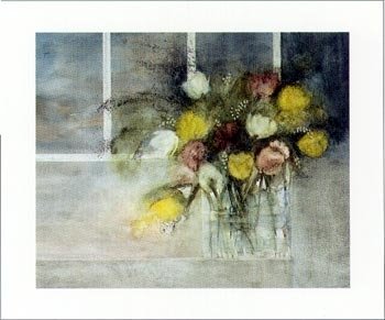 Affiche: 'Flowery I' par Magda Stoop - Taille de l'image 18 cm L x 26 cm H .