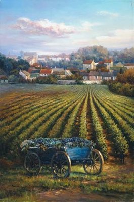 Affiche: 'Grapes on Blue Wagon' par Rosa Chavez - Taille de l'image 20 cm L x 25 cm H try making a full description and product details to find.