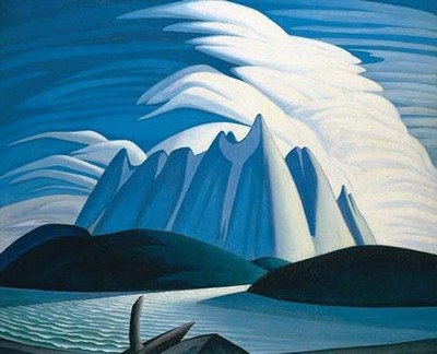 Affiche: 'Lake and Mountains' par Lawren Harris - Taille de l'image 25 cm L x 20 cm H