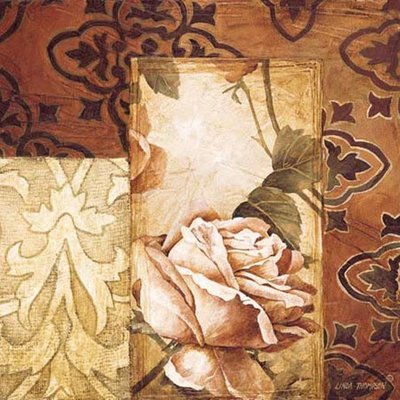Affiche: 'Linen Roses I' par Linda Thompson - Taille de l'image 22 cm L x 22 cm H