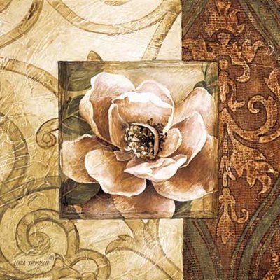 Affiche: 'Linen Roses II' par Linda Thompson - Taille de l'image 22 cm L x 22 cm H