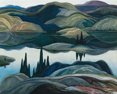Affiche: 'Mirror Lake' par Franklin Carmichael - Taille de l'image 24 cm L x 20 cm H .