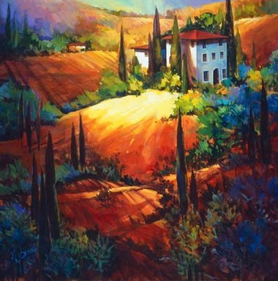 Affiche: 'Morning Light Tuscany' par Nancy O'Toole - Taille de l'image 22 cm L x 22 cm H try making a full description and product details to find.